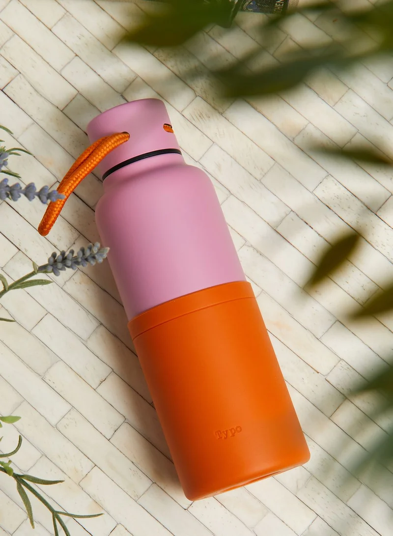 Designed in-house here at Typo, the loop metal drink bottle is fitted with a rope loop around the screw-top lid for easy carrying. A silicone sleeve over the body of the bottle creates a sleek appearance and a beautiful texture against the 304 stainless steel bottle.