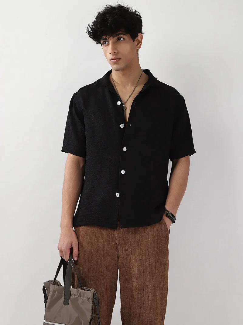 Urbano Fashion Oversized Fit Cuban Collar Half Sleeve Textured Shirt