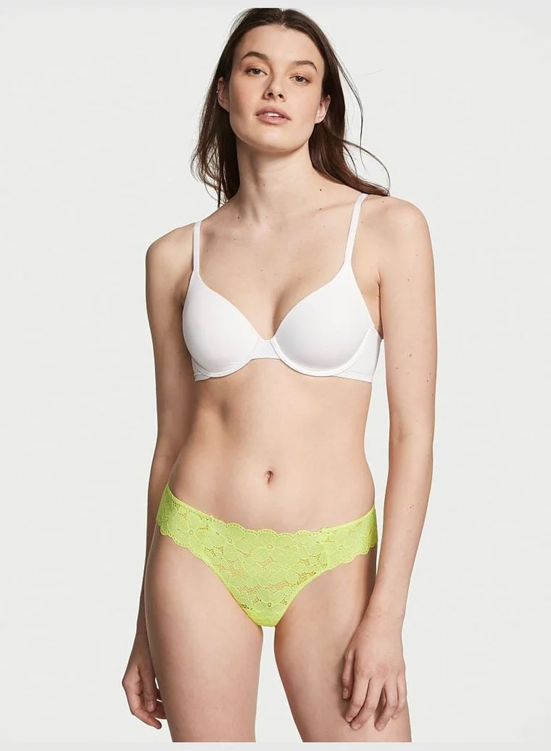 Everyone loves our signature, stretch lace thongs for their comfy feel and second-skin fit. You'll want to add our newest lace version to your collection.   Low rise Lace lays flat for no show-through Cotton panel gusset No back coverage Machine wash Imported