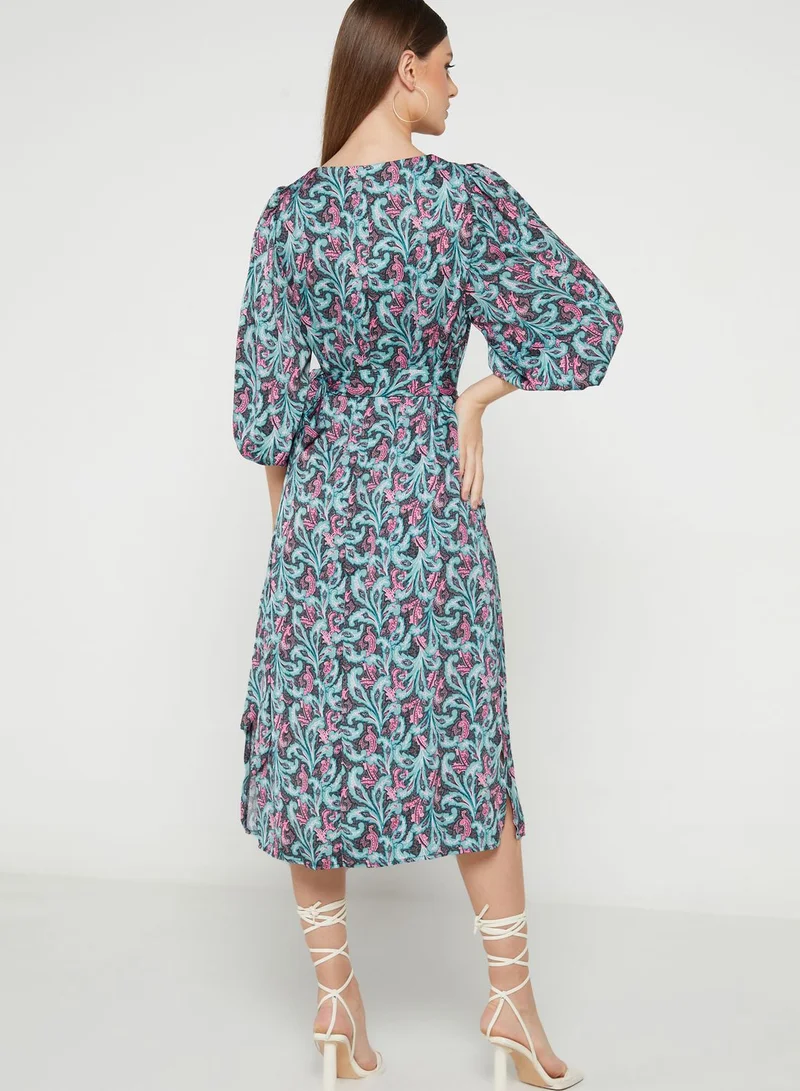 Wallis Petite Puff Sleeve Tiered Printed Dress