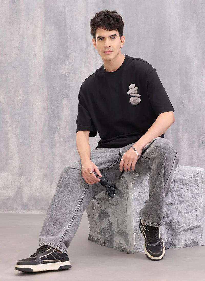 Casual Oversized Fit Tshirt With Back Print| Black