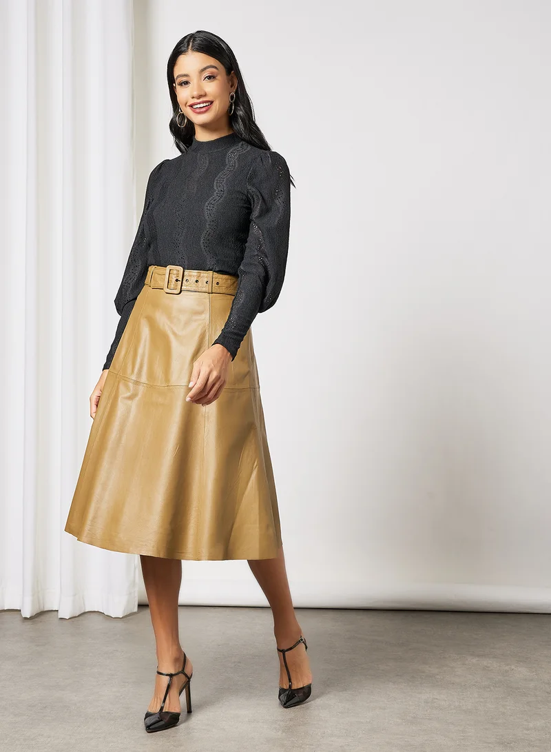 Broderie Anglaise High Neck Top Black