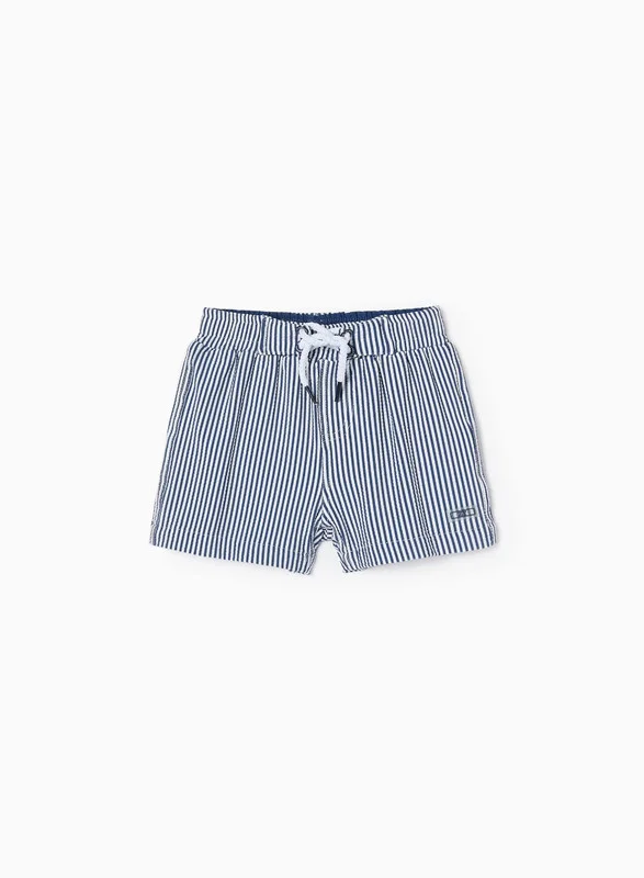 Brothers & Sisters Collection. Striped swim shorts for baby boys. Elasticated waistline and adjustable drawstring. Interior briefs in mesh fabric for greater comfort. A comfortable piece for a more relaxed beach look.