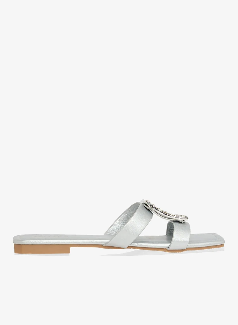 Silver Rhinestone Detail Embellished High Heel Sandals