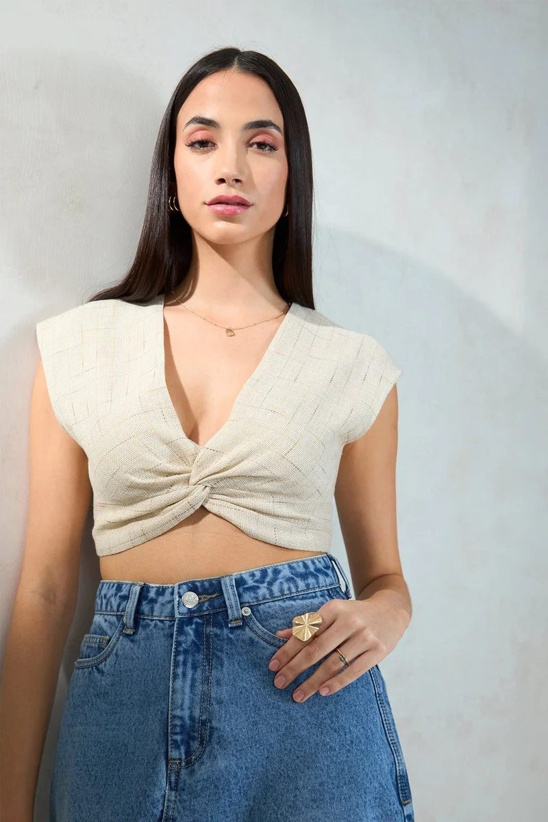 Linen Cropped Brunchwear Boxy Fit Lace Shirts for Women