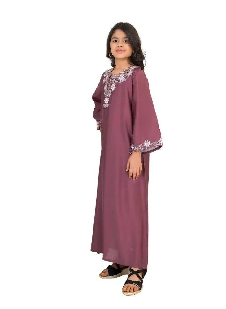 SOFT SHINY SATIN FINISH EMBROIDERED JALABIYA