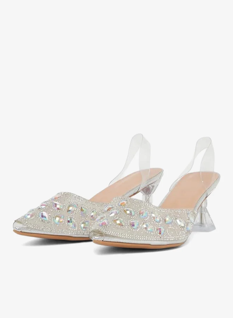 Beige Pearl Embellished Slides