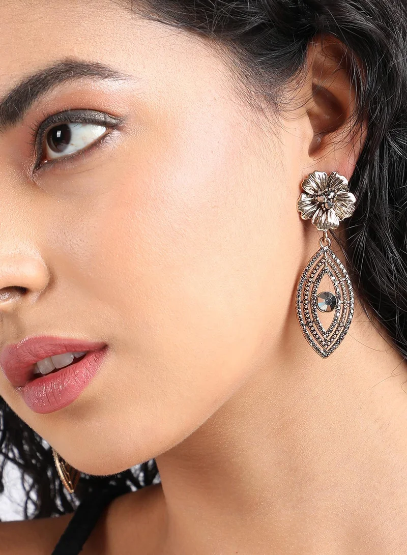 Black Floral Artificial Drop Earring Jewellery