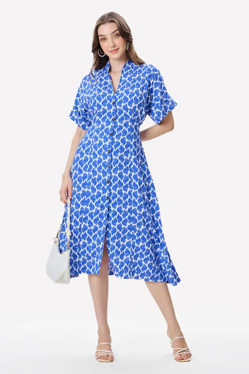 Viscose Polka Printed Midi Dress