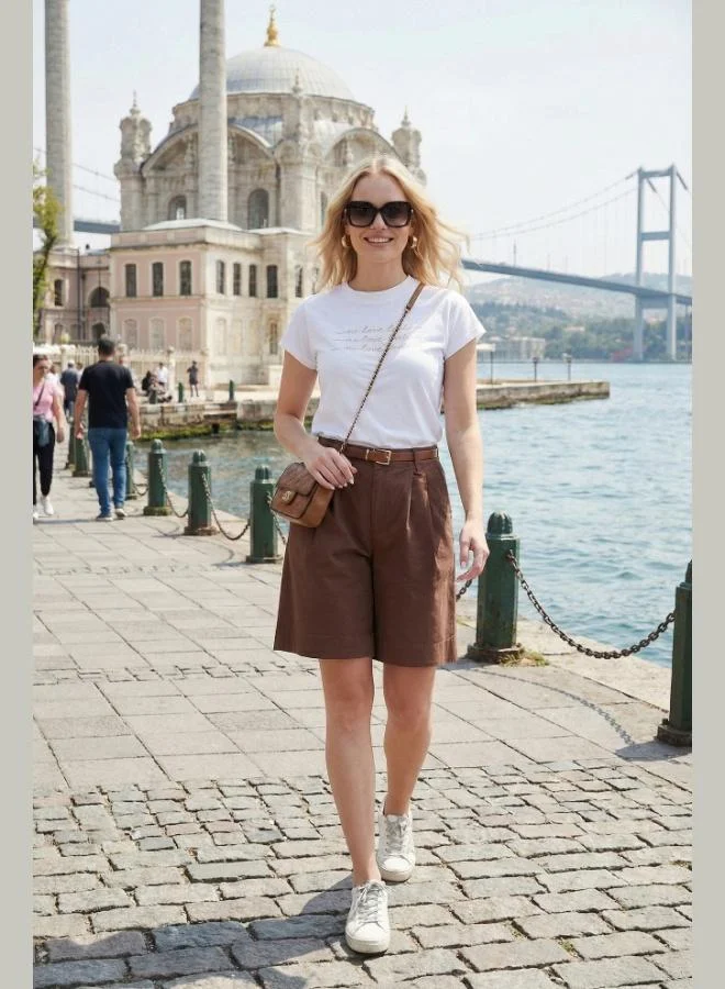 Lela Cotton Loose Fit Pleated Belted Bermuda Shorts Women's Shorts 668YP5439
