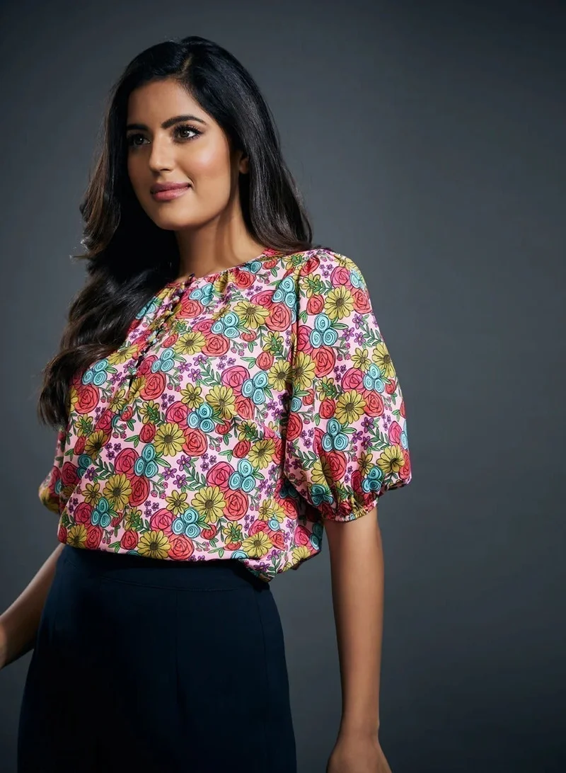 Floral Shirred Cuff Top