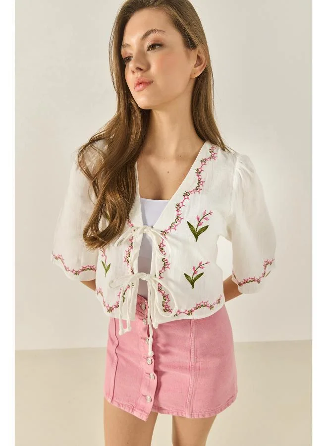 3D Floral Bow Tie Up Detail Jacket
