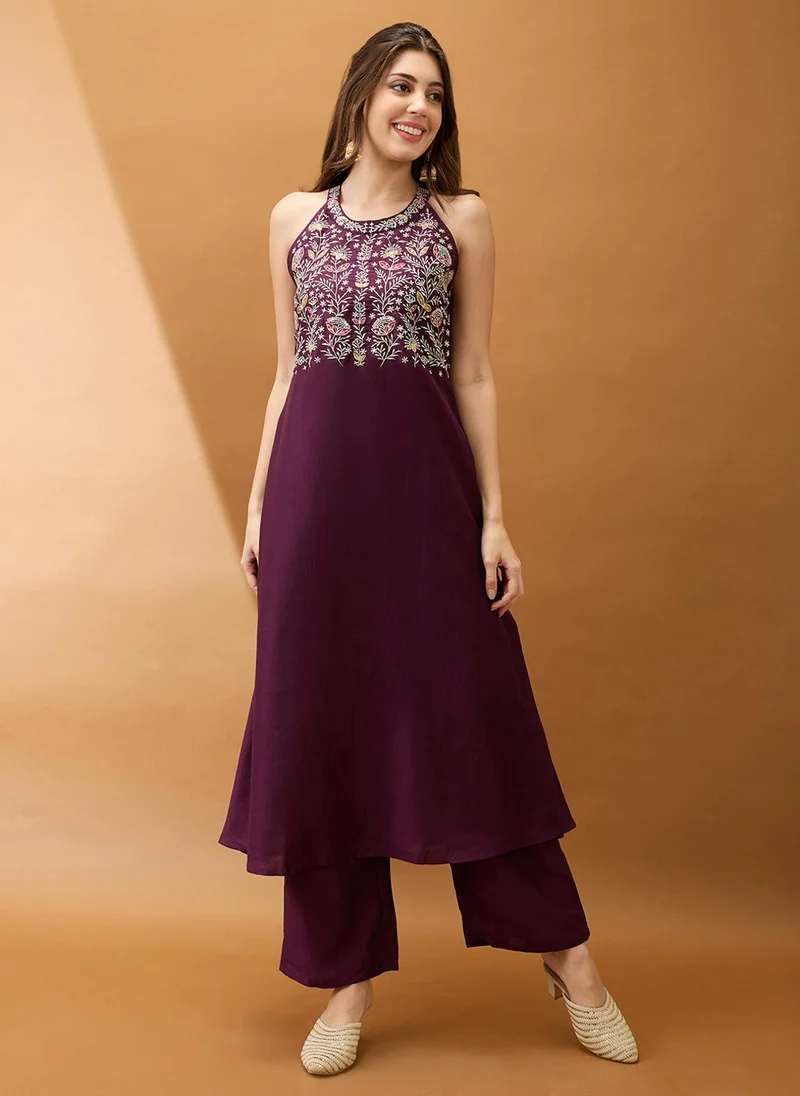 Globus Women Floral Embroidered Straight Kurta & Pant Set