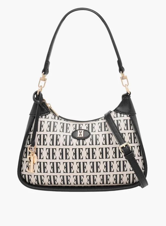 Monogram Print Crossbody Bag with Adjustable Strap and Button Closure