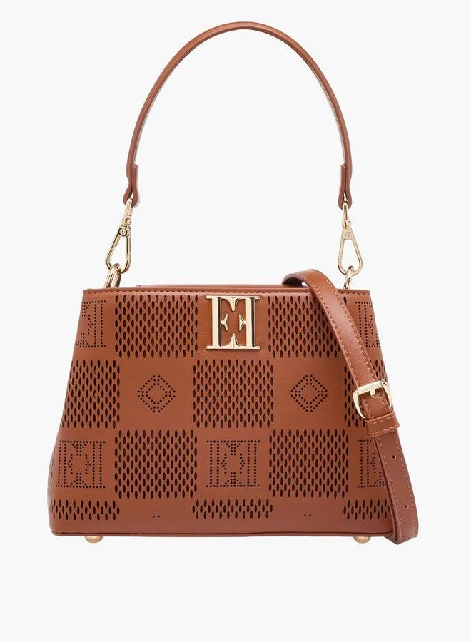 Monogram Embossed Satchel Bag with Grab Handle and Button Closure