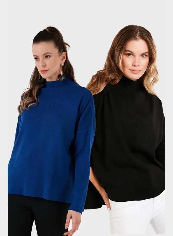 Lela Cotton Long Back Standing Collar 2-Pack Knitwear Sweater Women's SWEATER 4615002S2