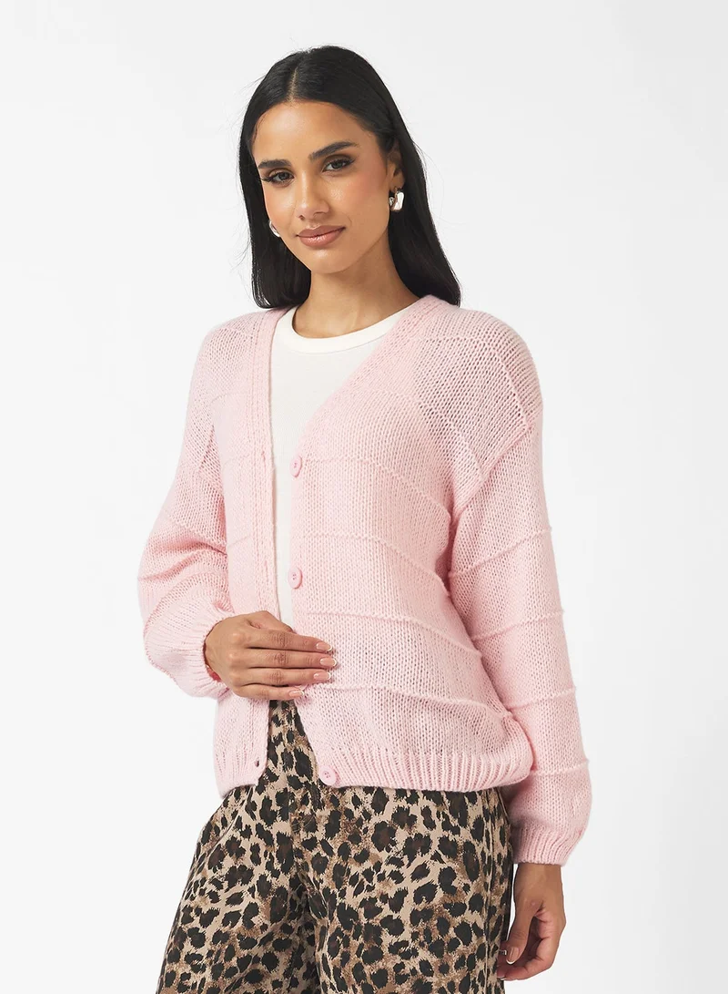 Button Up Wool Blend Structured Cardigan
