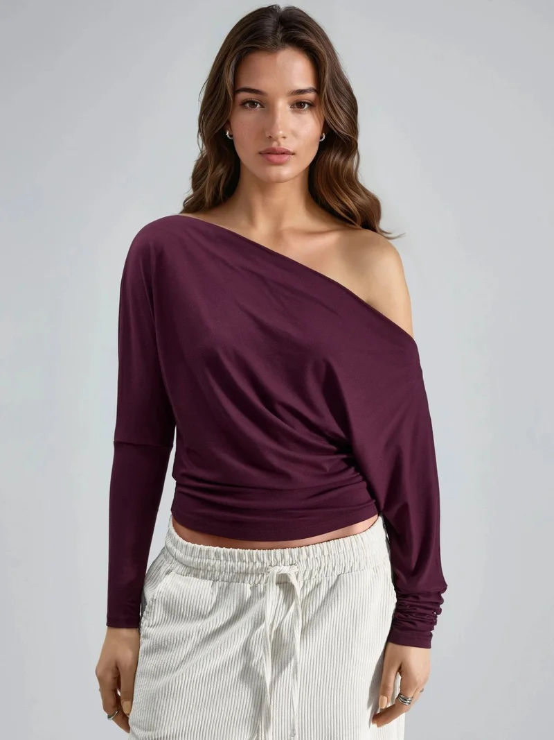 BUSEM Loose Fit Boat Neck Blouse