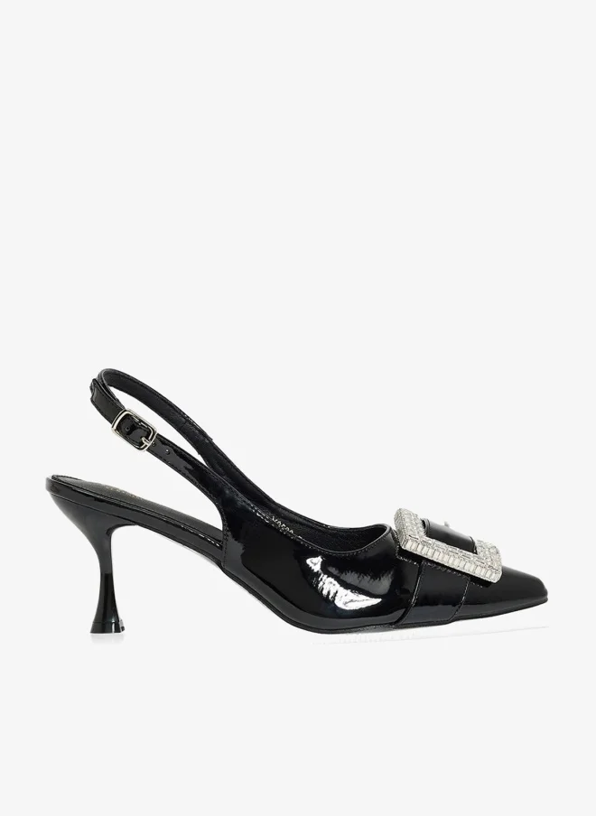Shiny Asymetric Strap Pointed Pump
