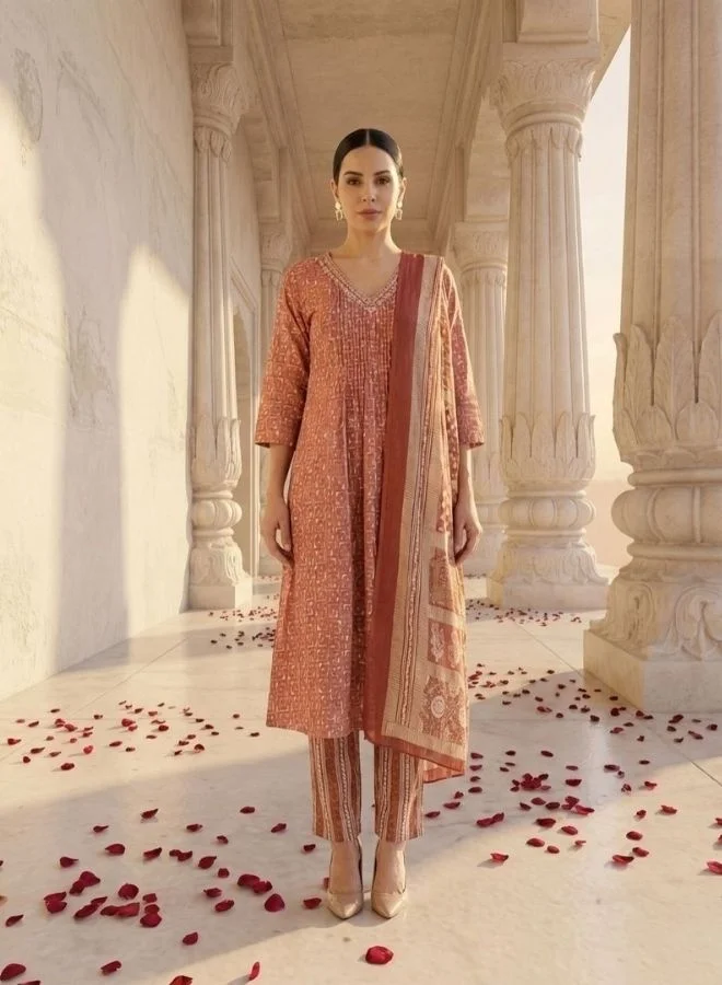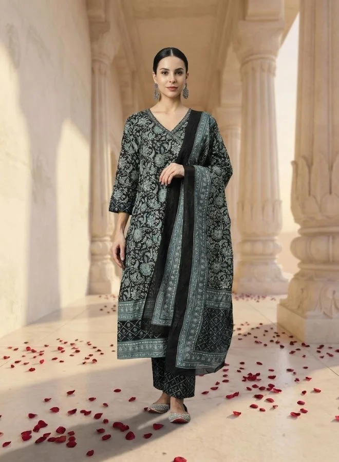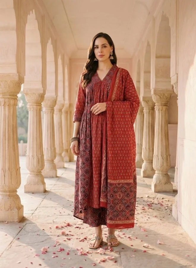 Yuris Women Yellow Paisley Printed Pure Cotton Kurta with Trousers With Dupatta