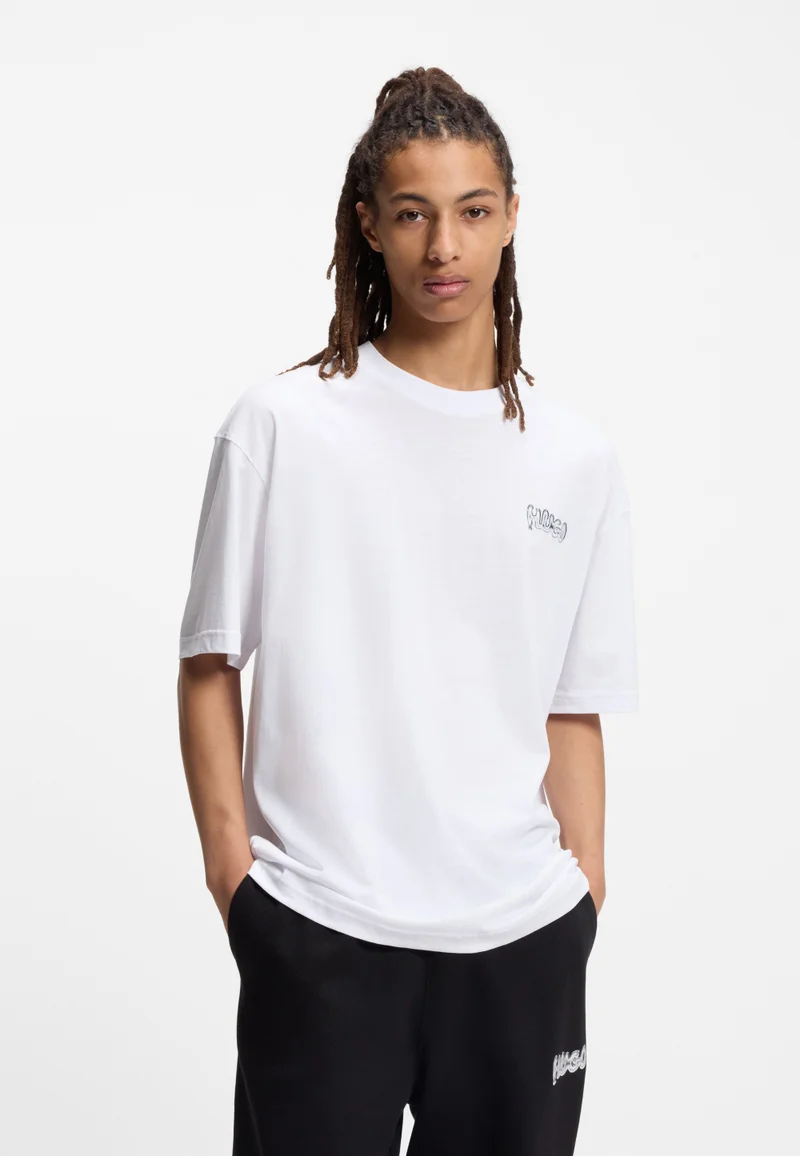 Loose-fit jeans in blue denim with Happy HUGO logo