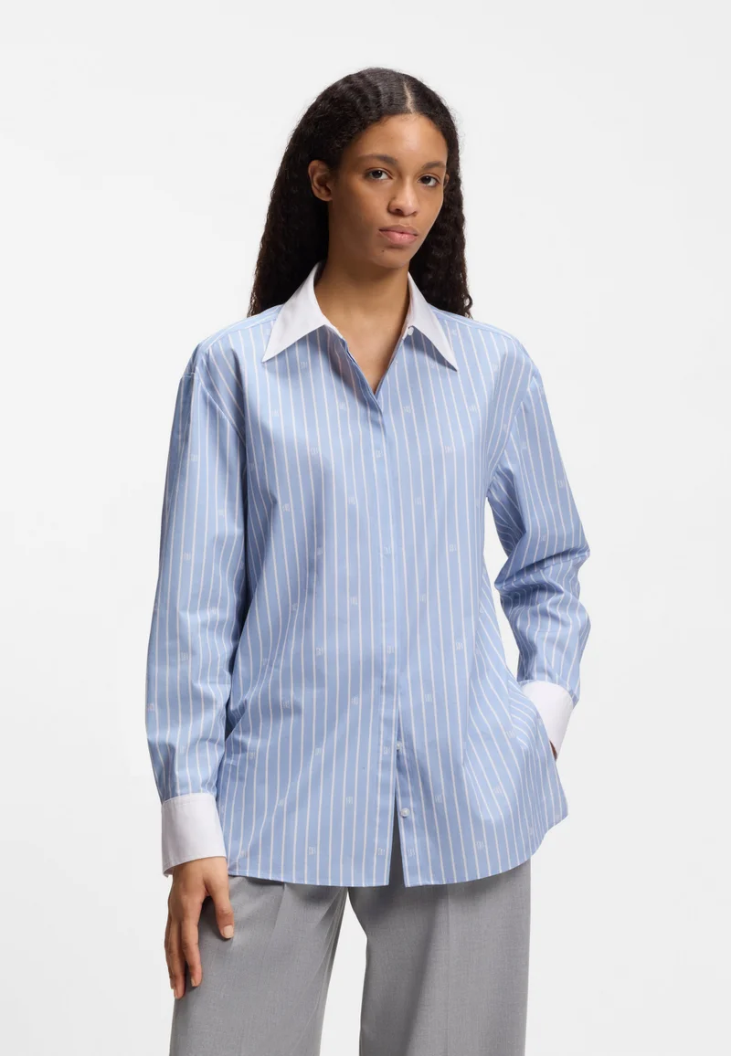 Relaxed-fit hoodie in stretch jersey with logo print