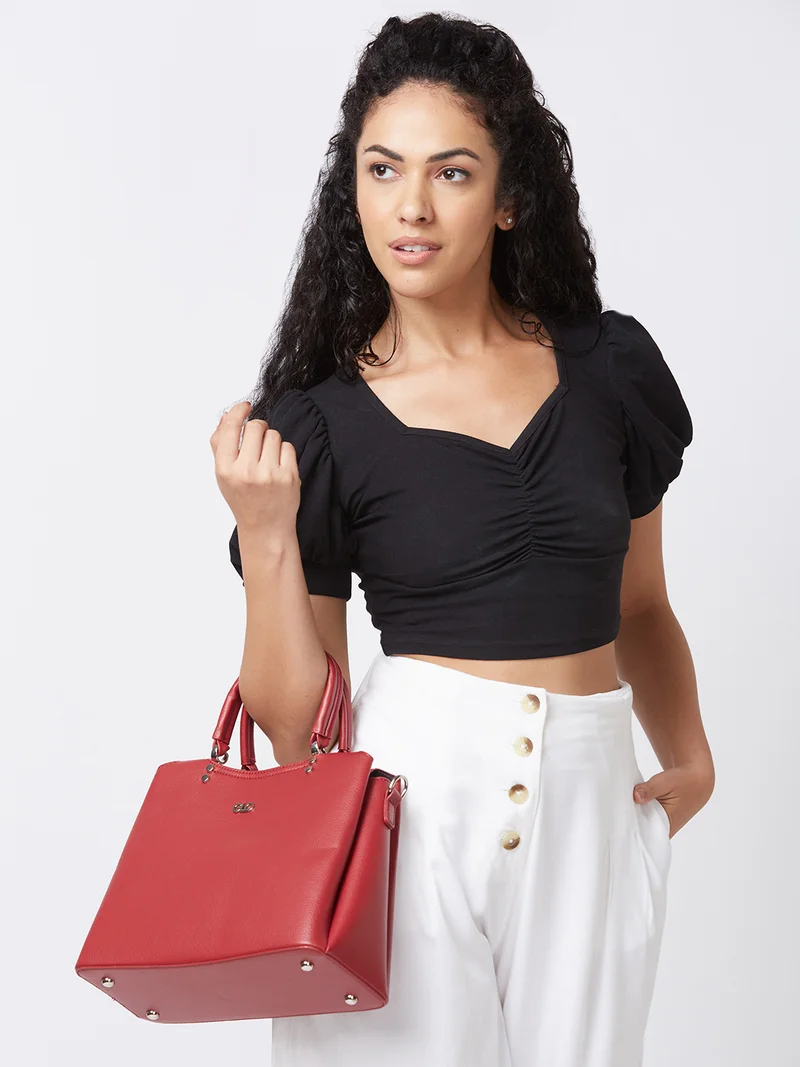 Globus Women Red Bow Shape Lock Embellished Oval Party Clutch With Detachable Chain Strap