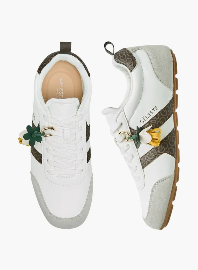 Women's Monogram Print Lace-Up Sneakers with Wedge Heel