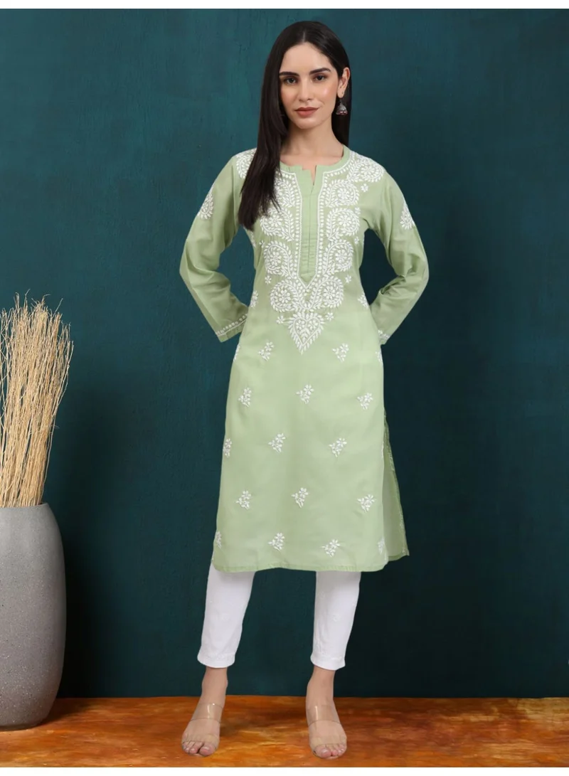 Hand Embroidered Chikankari Modal Kurti-AL3611