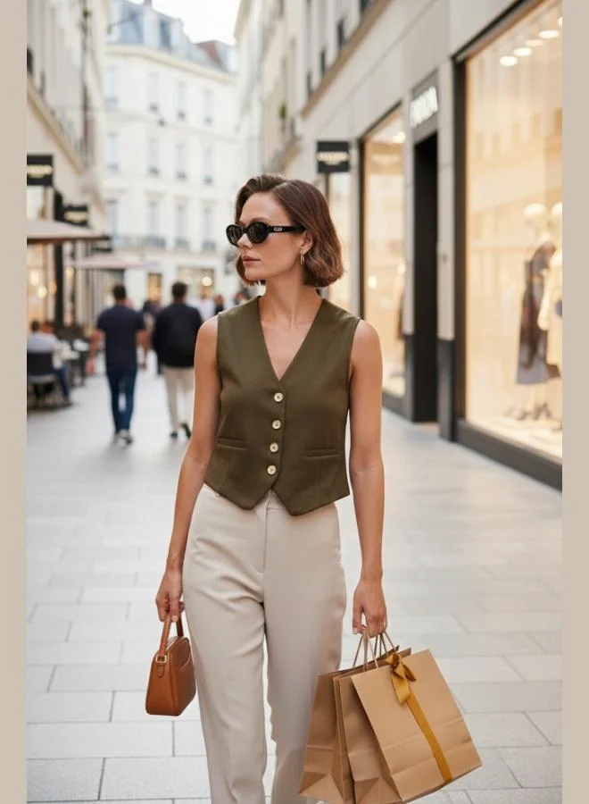 Lela Fitted Scuba Suede V-Neck Buttoned Vest Women's VEST 5865576