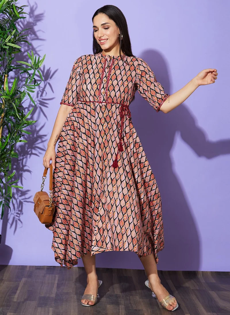Globus Women Printed Tie-Ups Fit & Flare Party Dress