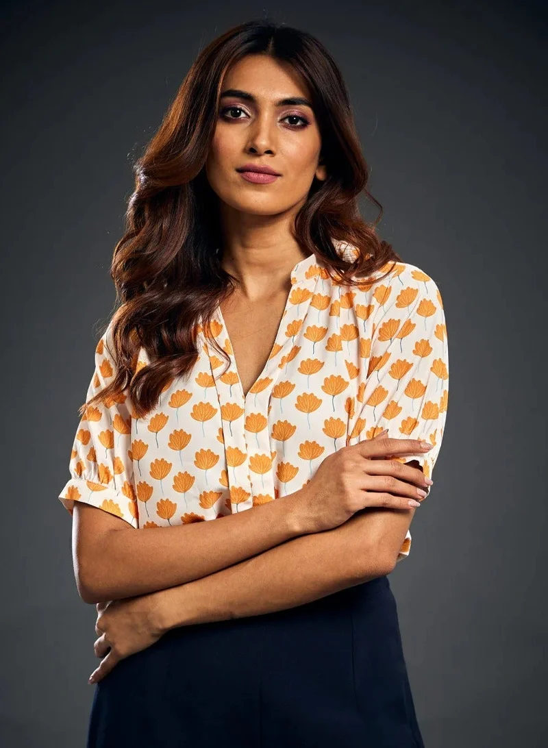 Floral Shirred Cuff Top