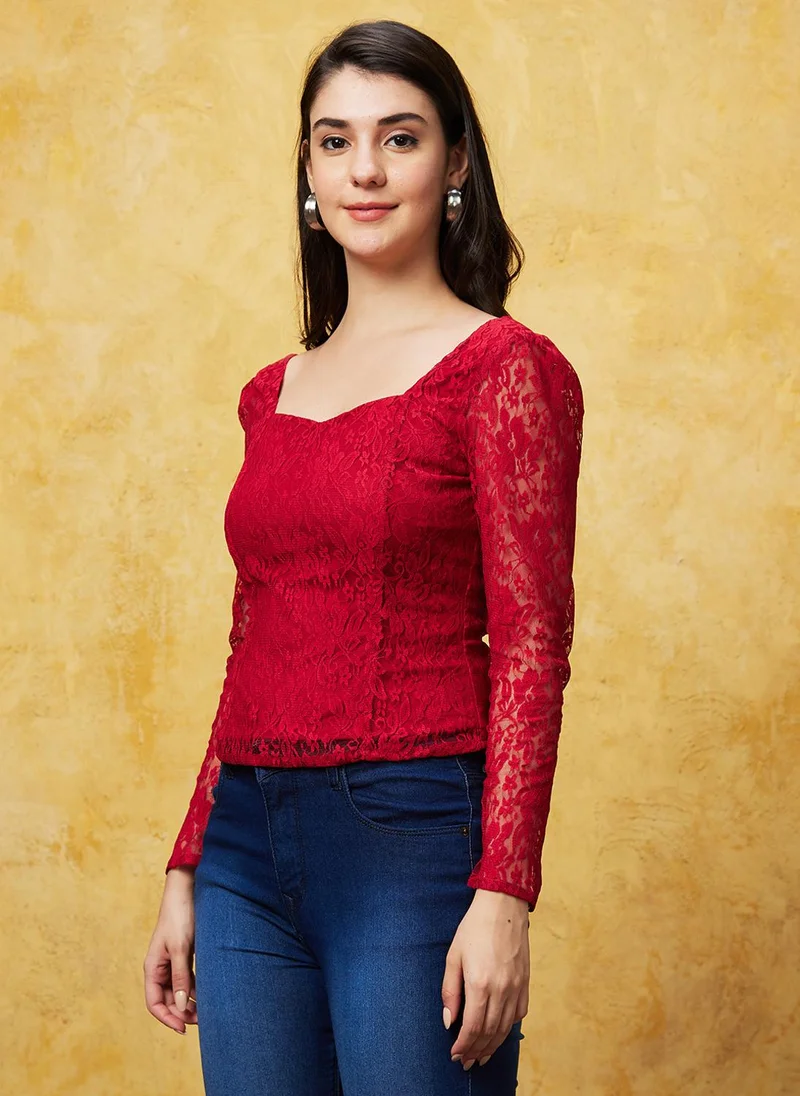 Globus Women Self Design Lace High Neck Sheath Mini Dress