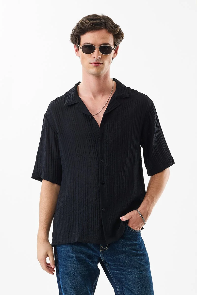 Core Lab Satin Stretch Black Slim Fit Shirt
