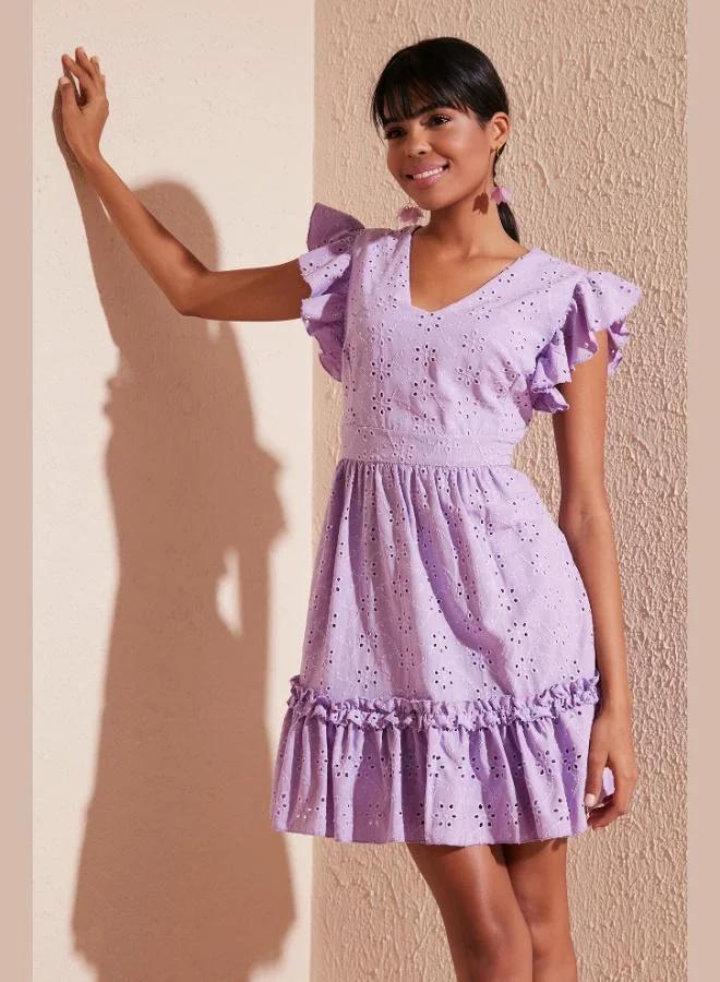 Lela Patterned Regular Fit Wrap Neck Mini Dress Women's Dress 5865725