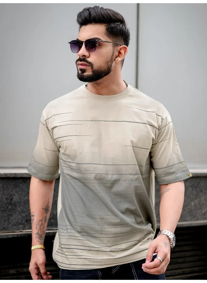 Maniac Mens Printed Round Neck raglan Half Sleeve Navy and Light Grey Cotton Oversized Tshirt