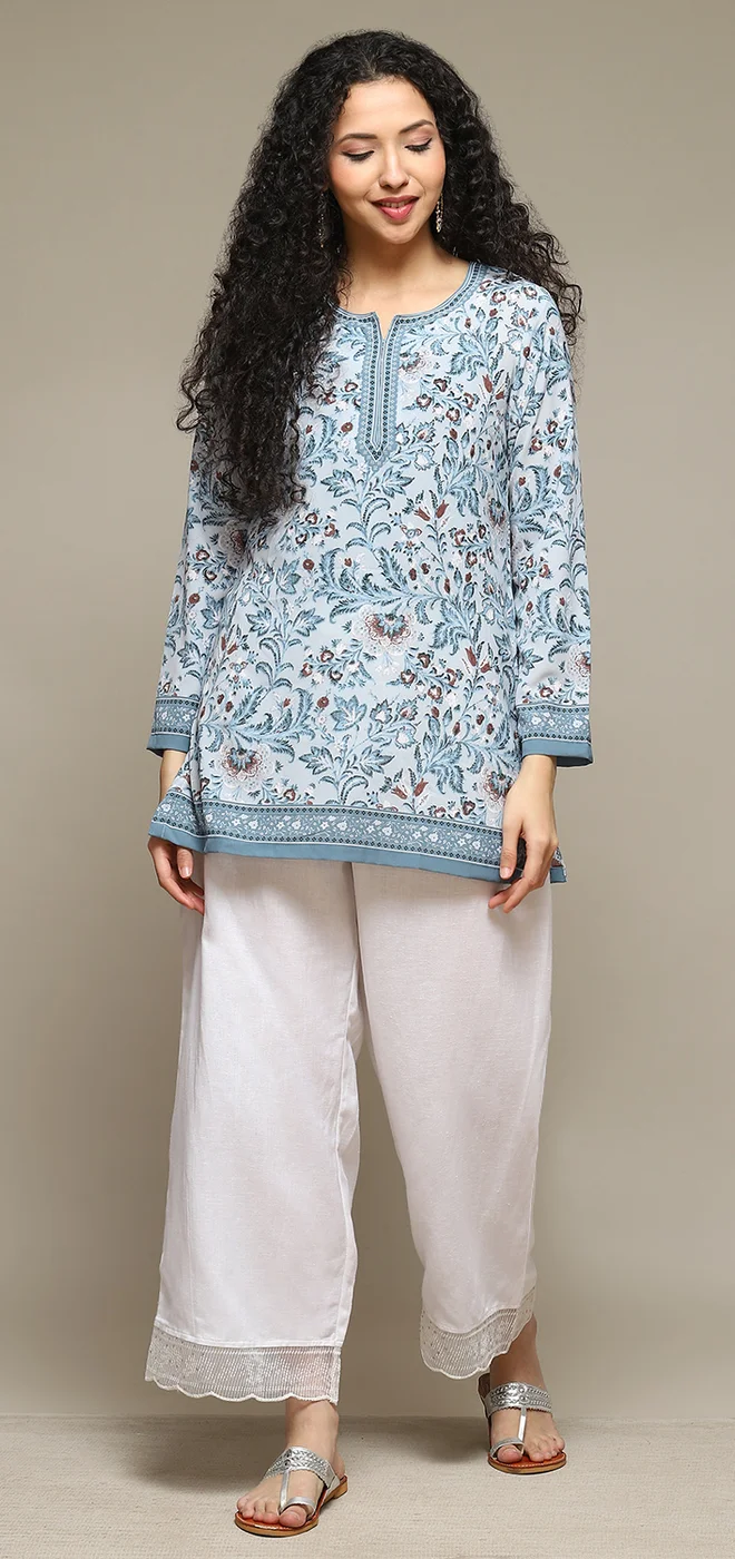 Sky Blue Straight Kurta Palazzo Suit Set
