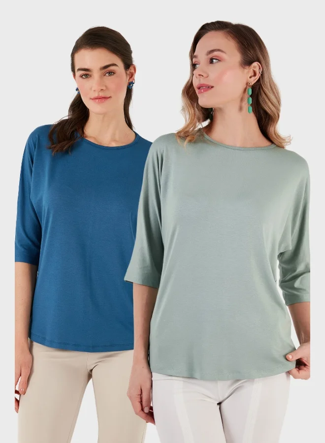 Lela V-Neck Relaxed Fit Slit Detailed 2-Pack Blouse Women's BLOUSE 5862000S2