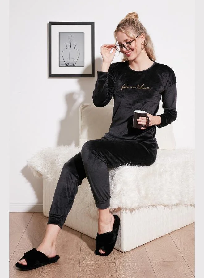 Lela Standard Fit Crew Neck Soft Velvet Pajama Set Women's Pajama Set 6094201