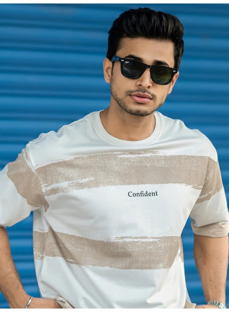 Maniac Mens Printed Round Neck Half Sleeve Berly Green and Cream Cotton T-Shirt