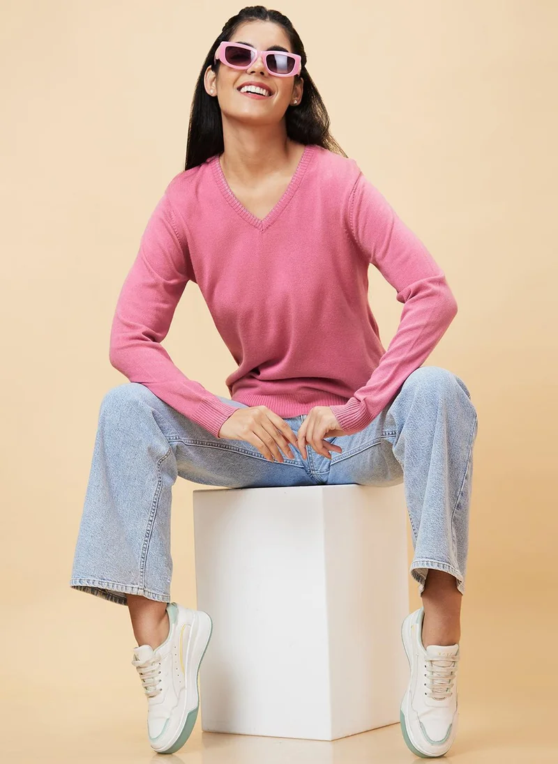 Globus Women Yoke Design Band Collar Thread Work Kurta