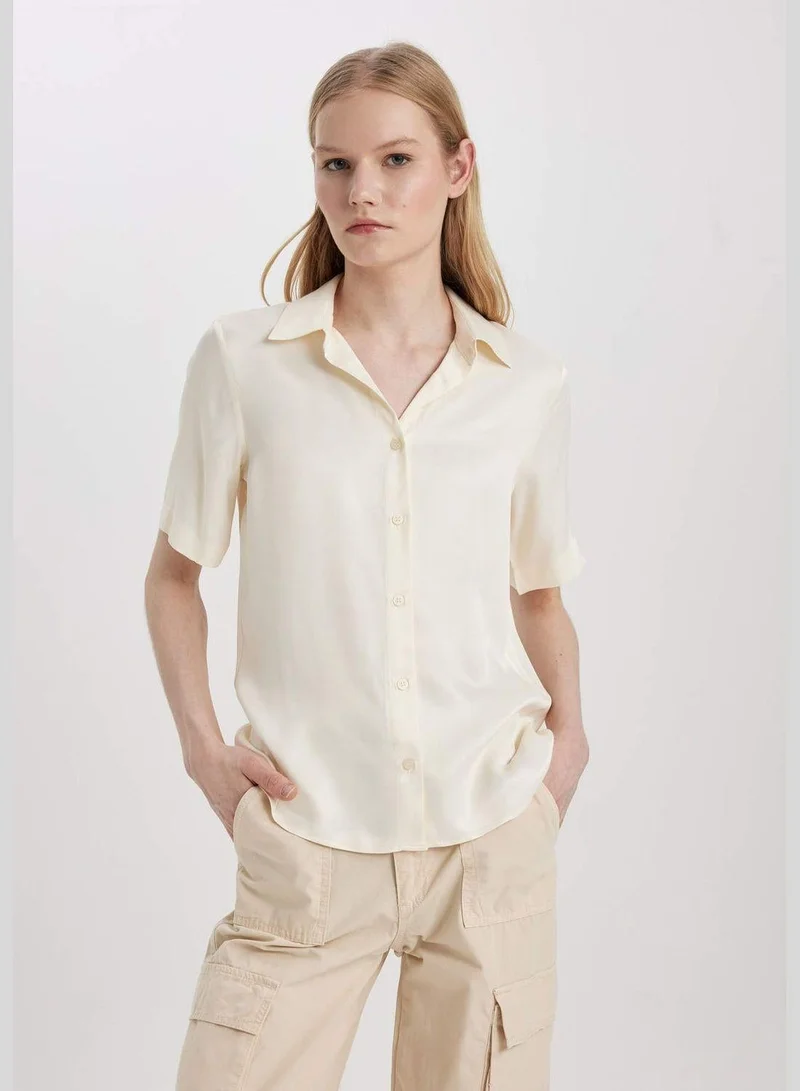 Oversize Fit Shirt Collar Poplin Short Sleeve Shir