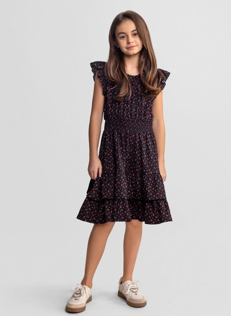 Girls black floral short sleeve dress