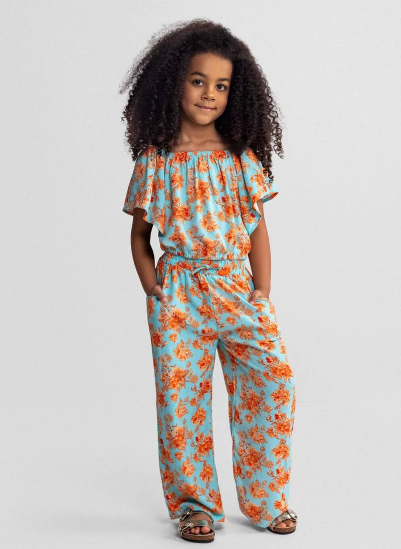 Girls short sleeve blue floral jumpsuit