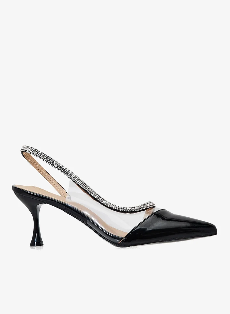 White satin mesh slingback with pointed toe and bow detail (Jennifer Chamandi)