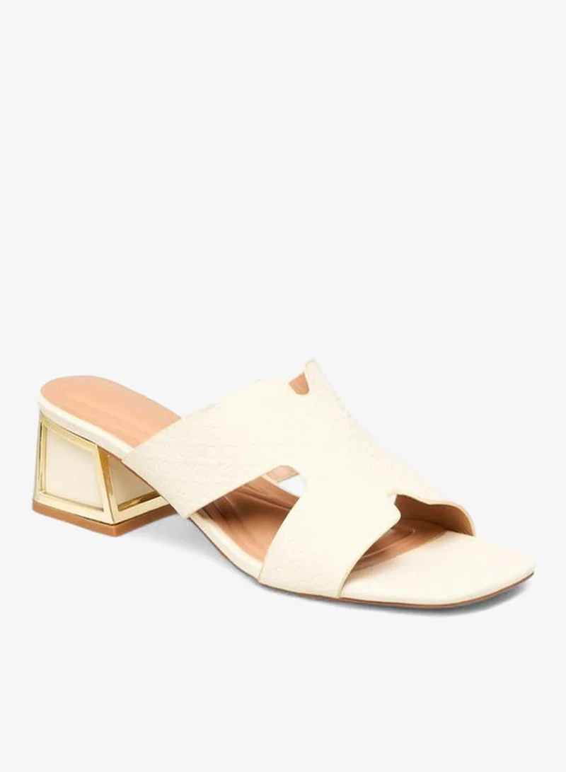 Women's Monogram Print Slip-On Sandals with Flared Heels