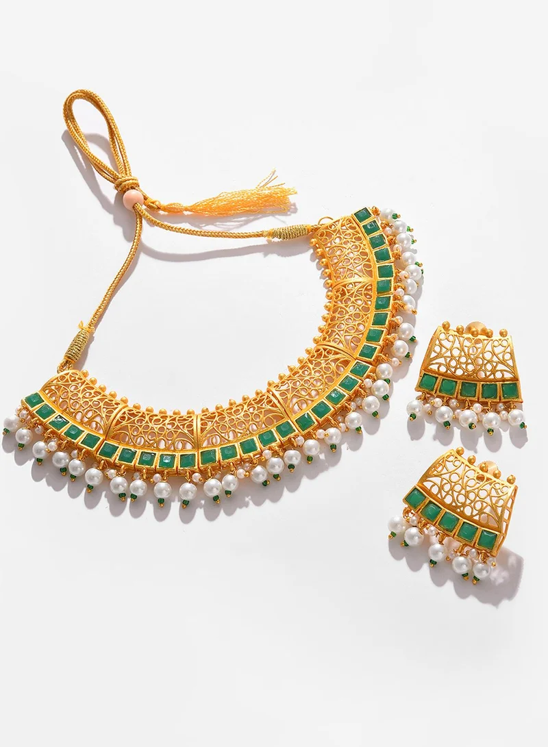 Green Stone-Studded Floral Artificial Stud Earring Jewellery