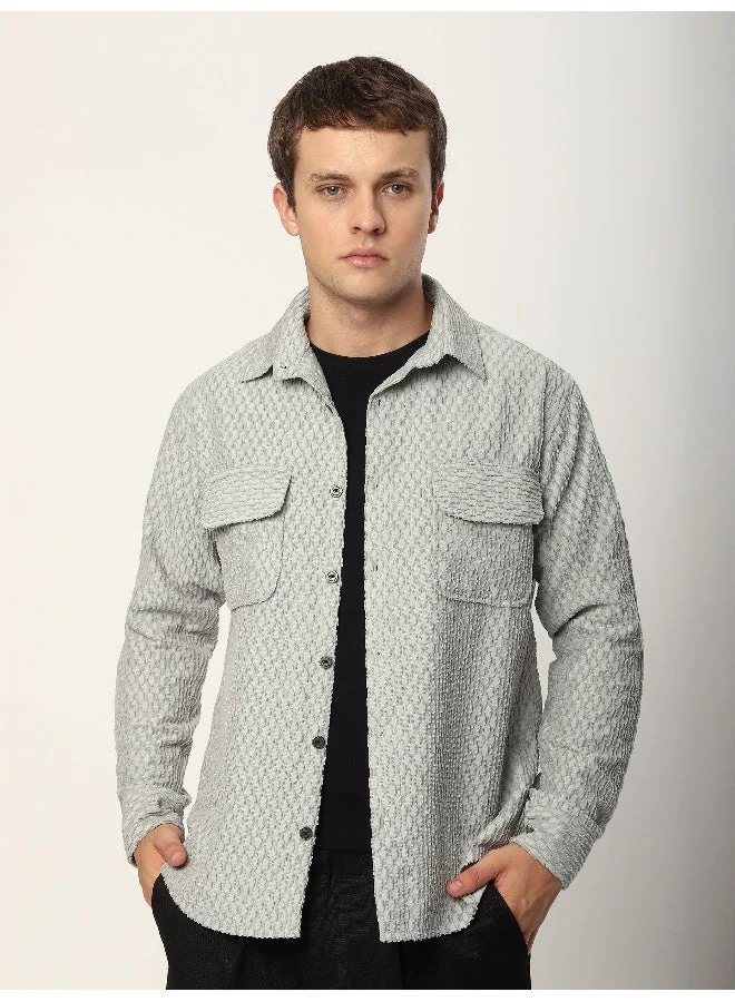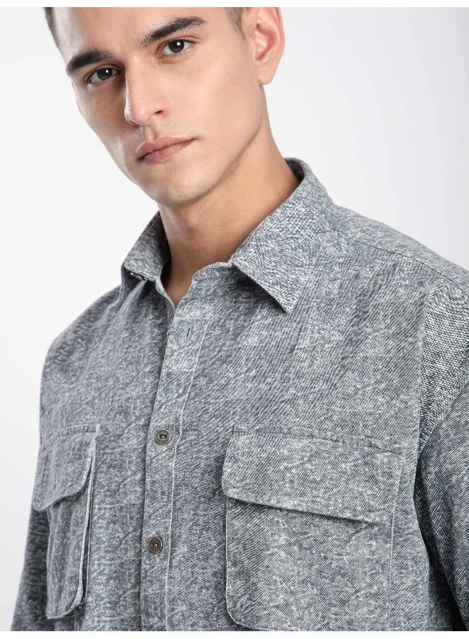 Grey Galaxy Embroidered Half Sleeve Shirt