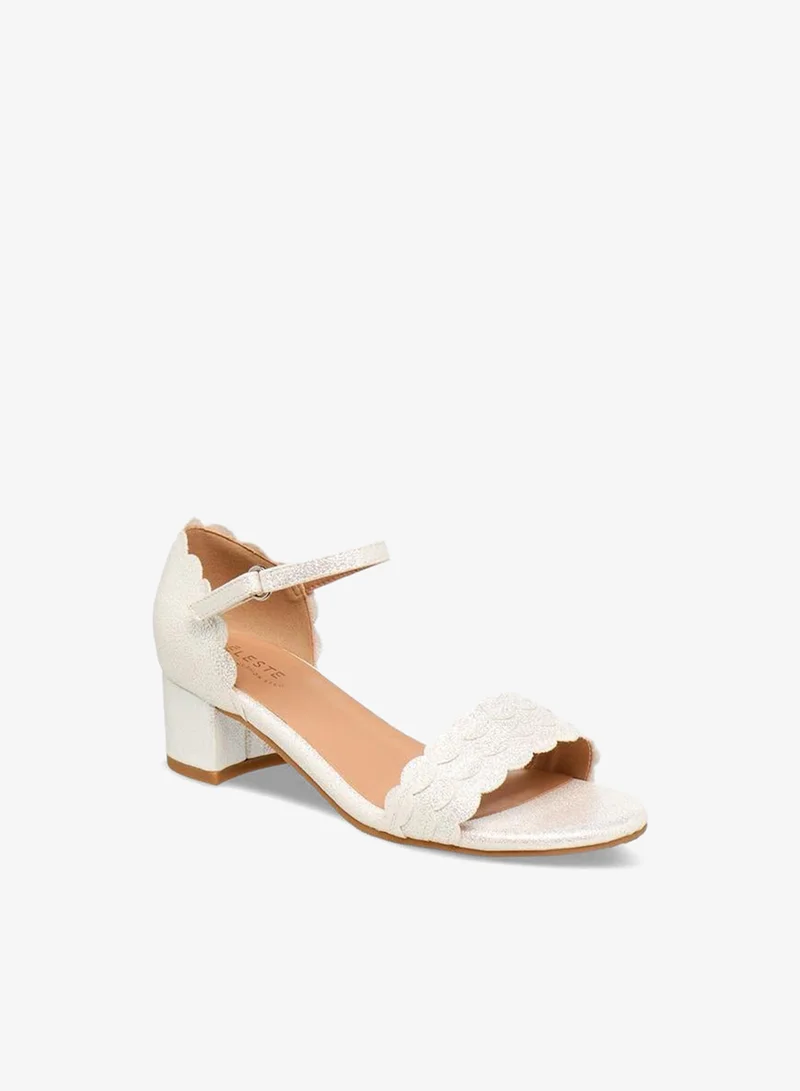 Girls' Metallic Block Heels Shoes with Hook and Loop Closure