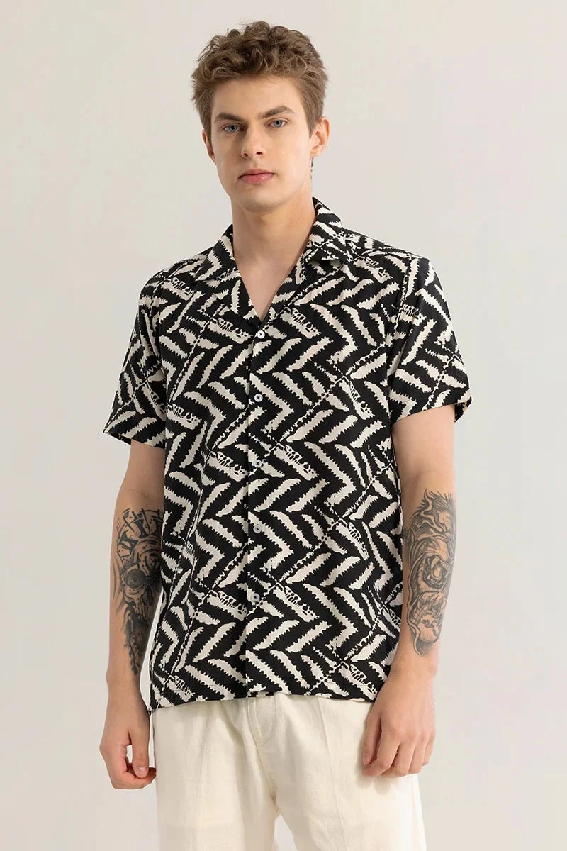 Black Geometric Relaxed Fit Shirt